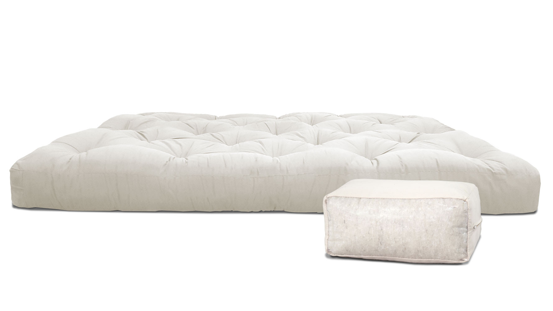 Futón formado por napas de lana de oveja 100% natural, sobrepuestas y ligadas por sistema de puntos.