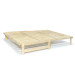El sofá-cama A-Frame disponible en color crudo, tiene diversas medidas. Como cama son 200x140 cm, sin embargo, una vez transformado en sofá sus medidas pasan a ser de 140x105 cm. - Esquema